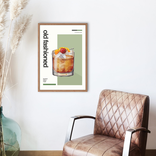 Old Fashioned Cocktail Poster - Stylish Wall Art for Home Bar Decor